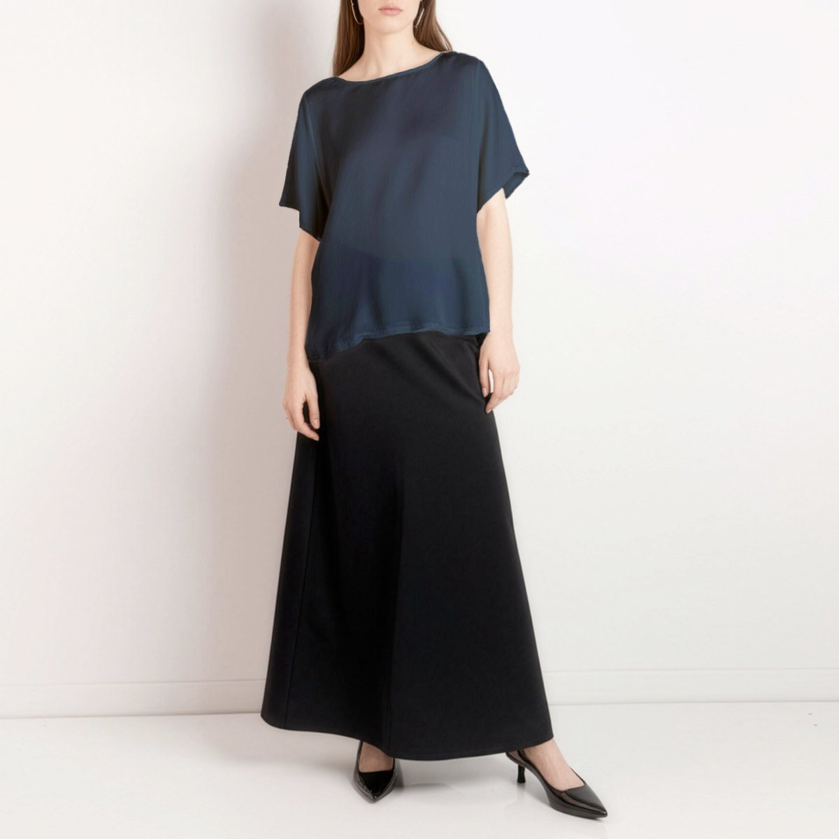 The Oversized tee silk meets effortless style in this deep navy edition. Studio Heijne’s Oversized Tee in Silk Crepe offers a sophisticated silhouette with a relaxed feel, designed for those who appreciate quiet luxury. Made in Europe from premium silk crepe, it flows gracefully while maintaining a clean structure.