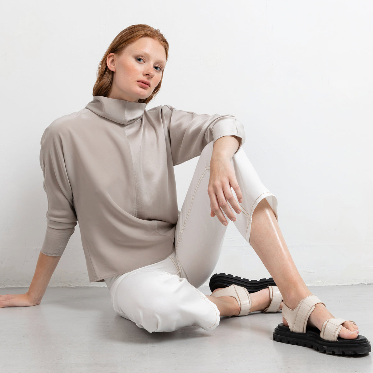 Style these white pants with sandals and match together with blazer Grace in the same fabric for the a modern office look.