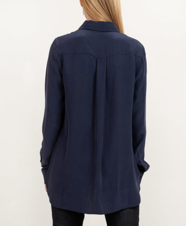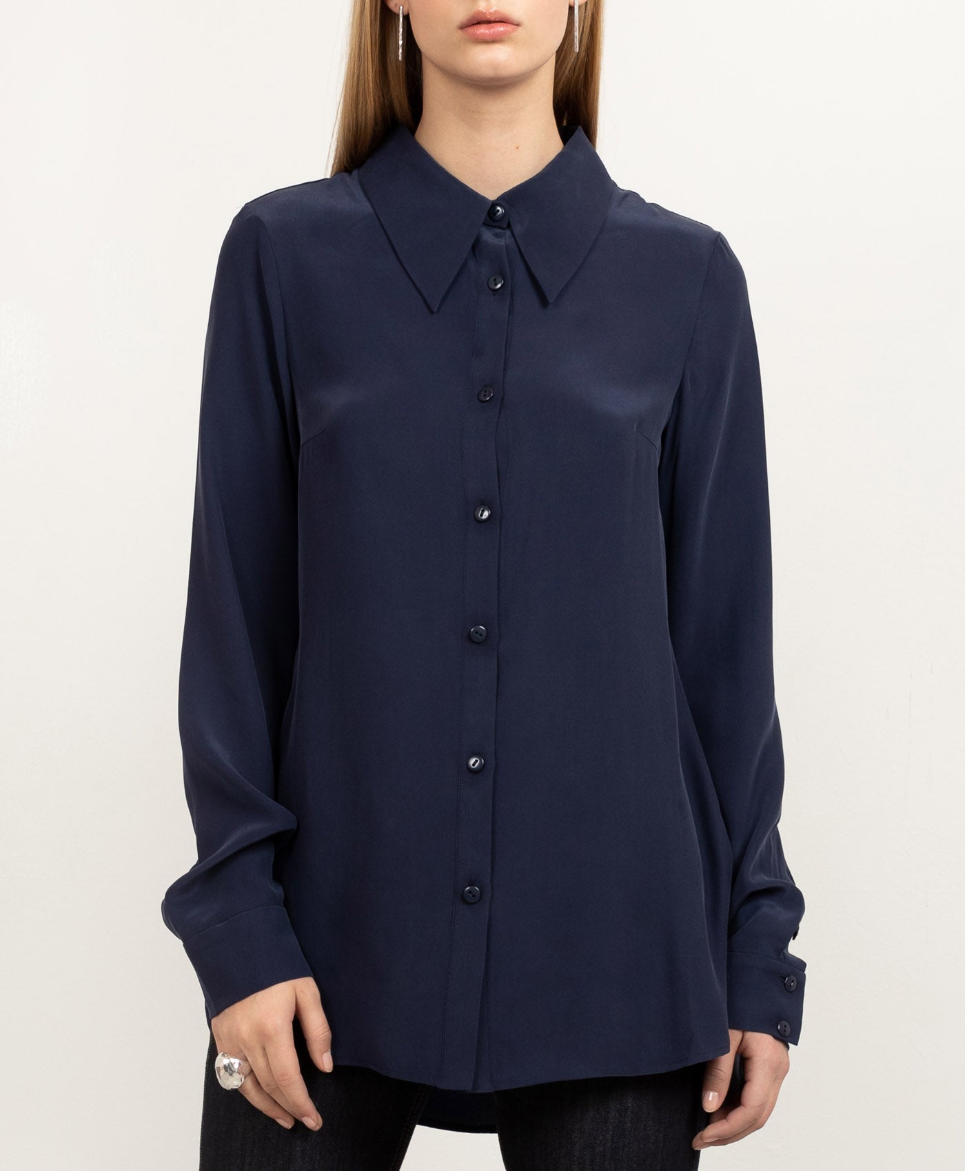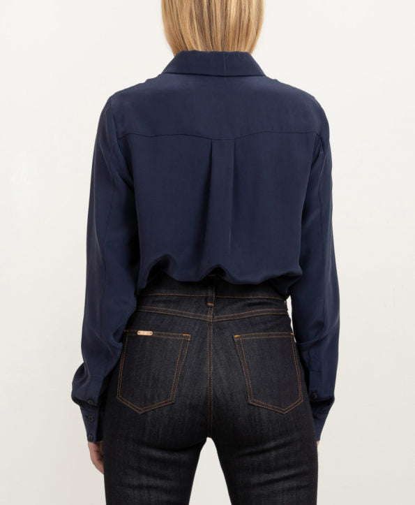 The navy shirt version is a must have in your wardrobe. We have both a white custom-fit shirt in soft Tencel, as well a luxurious version in white heavy silk crepe. Alternatively, opt for colour in our super soft washed silk or dotted print in silk crepe.